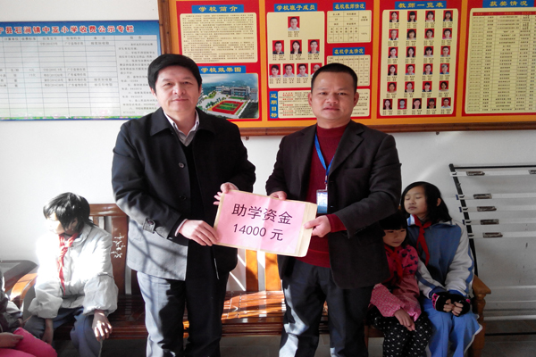 随后,曾桓松一行来到横迳社区中亚小学,代表学校工会组织的“爱心父母”向贫困户子女发放助学金14000元。