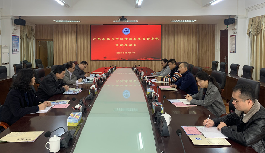 本网讯 12月24日,广东工业大学原党委副书记、纪委书记、省监委驻校监察专员汤耀平一行到访我校,就纪检监察工作展开深入交流。校党委副书记、纪委书记、省监委驻校监察专员黄劲松出席座谈会,纪委办、监察处全体干部参加座谈。