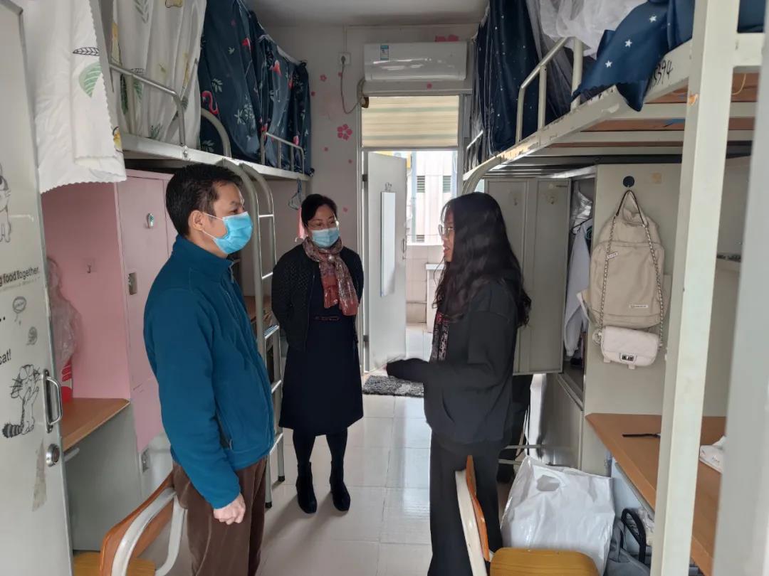当天,校领导、二级学院领导、老师分别深入学生宿舍,看望返校学子。他们欢迎学生回校,对学生们配合学校安排、如期返校给予肯定,鼓励学子们珍惜美好时光,以饱满的精神状态迎接新学期、投入新生活。