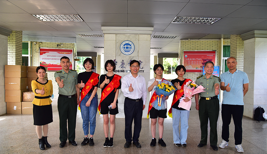 本网讯 3月18日,我校在行政楼中厅举行简单热烈的欢送仪式,欢送环境与化学工程学院的黎倚晴、王可心,数学与统计学院的吴来英、冯雨欣等4名女大学生到部队报到。