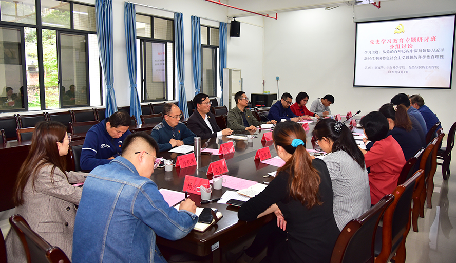 本网讯 按照我校党委理论学习中心组暨中层领导干部、党支部书记党史学习教育专题研讨班的工作安排,4月9日,13个党史学习教育小组分组举行了第一次专题研讨。研讨以“从党的百年历程中深刻领悟习近平新时代中国特色社会主义思想的科学性真理性”为主题,就学习习近平新时代中国特色社会主义思想精髓要义、党的奋斗历程、理论创新、自身建设、广东革命建设,展开深入研讨、交流碰撞。大家表示,加强党史学习教育,有助于深刻认识习近平新时代中国特色社会主义思想的指导作用,加深对历史逻辑、理论逻辑、实践逻辑的把握,推动理论和党史学习教育往深里走、往心里走、往实里走。