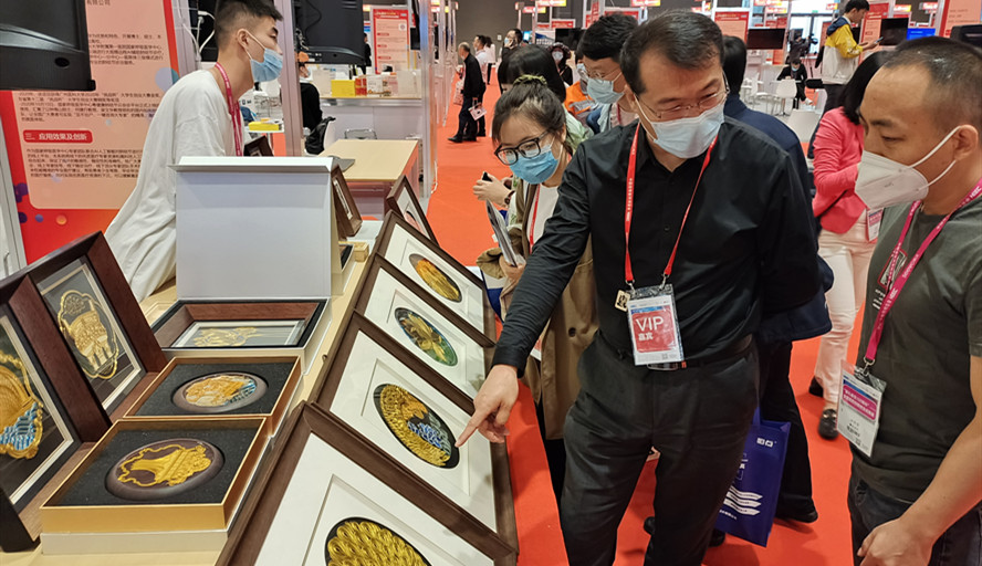 杜玉波参观了“学府文创工作坊”的“广府金绣”系列手工艺文创产品,询问了产品的制作工艺、量产能力、市场转化以及带动大学生创新创业方面的情况,听取了项目展带队老师、美术学院副教授胡荣奎的介绍,对我校创新创业教育所取得的成绩给予高度的肯定,希望我校以建党百年为契机,进一步深化创新创业教育改革,惠及更多的大学生。