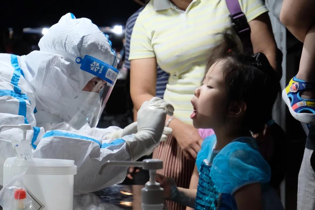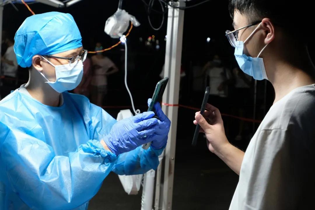 首日的核酸检测一直持续到晚上10点多才结束,8号上午8点,检测又继续进行。全体医护人员、师生员工与时间赛跑,为疫情防控担起了应尽的责任。