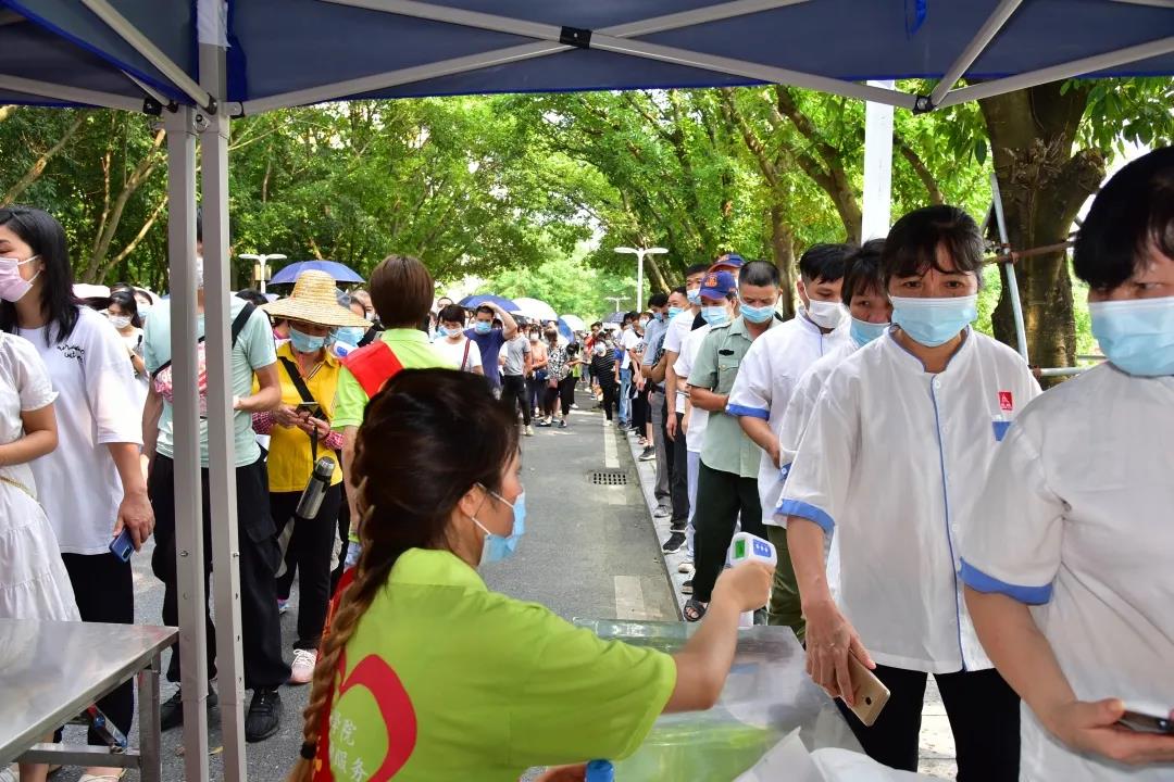 去年高三返校之前,我测过一次核酸,这次是第二次测,整个过程效率很高。感谢医护人员在如此高温下的辛苦工作,也谢谢志愿者们在现场维持秩序。疫情防控还要从自身做起,平时勤洗手,要外出的话带好口罩,保持安全距离,让我们大家一起努力,争取早日战胜疫情!