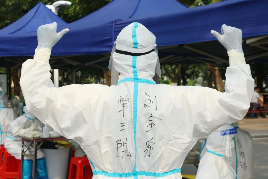 核酸检测队员何医生说,自己作为一名党员,无论哪里有需要,都要义无反顾地向前冲。虽然从佛山回来大家都很疲惫,但是一看到医院的通知,还是积极踊跃地要求来学校继续检测工作。她感谢学校师生对检测工作的尊重与配合,希望大家都保护自己,也保护好家人,为打赢疫情防控战助力。