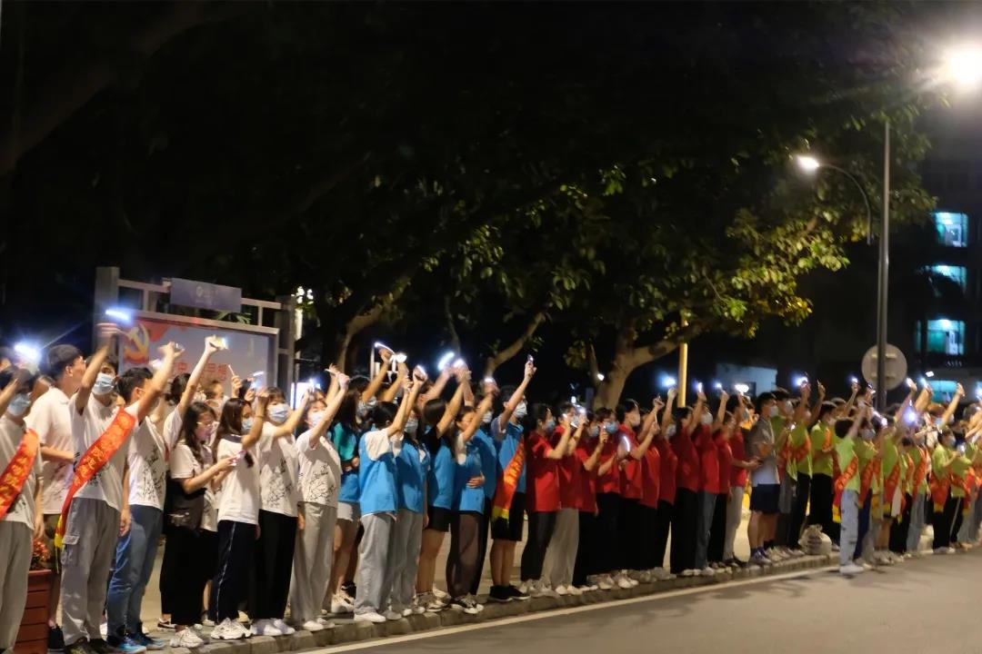 时间已近午夜,同学们纷纷拿出手机,打开闪光灯在空中挥舞,向他们心目中最可爱的人表达着敬意。一片片灯海交相辉映,组成了这个夜空中最耀眼的星辰。