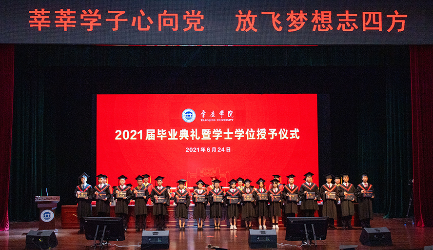 典礼上,副校长肖起清宣读2021届优秀毕业生表彰决定、2021届学士学位与辅修学士学位授予决定等文件。本年度共有来自17个二级学院、61个专业的5336名同学顺利毕业,其中643名毕业生获评“肇庆学院2021届优秀毕业生”荣誉称号;另有171名同学通过自己努力取得了辅修学士学位。