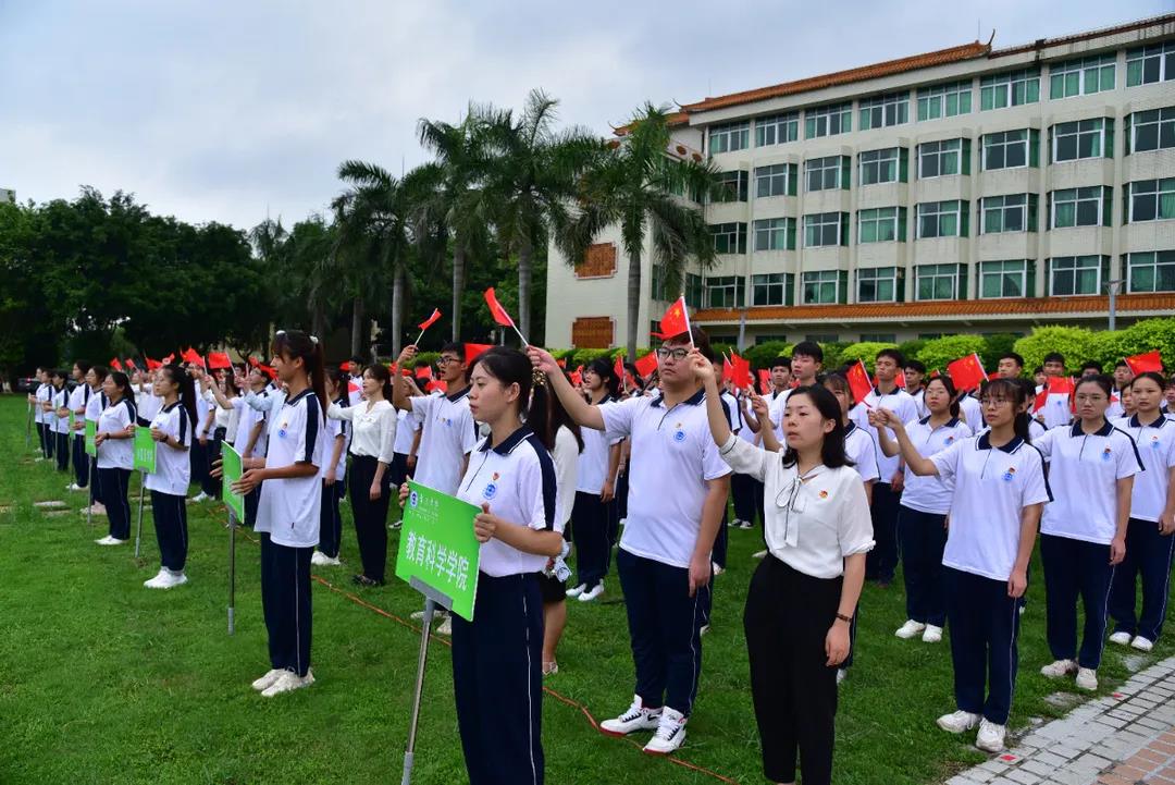 在观看庆祝大会直播前,1000名师生代表齐聚国砚广场,出席学校举行的升旗仪式。仪式中,全场师生向冉冉升起的国旗行注目礼,然后齐声唱响《没有共产党就没有新中国》,共同庆祝中国共产党百年华诞,祝福伟大的祖国繁荣富强。