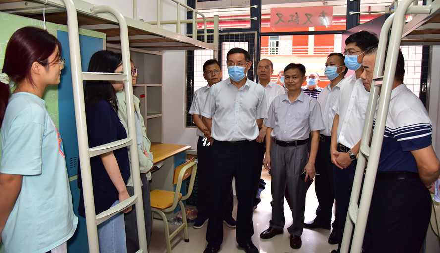 随后,检查组来到星湖校区,听取星湖校区管理办迎新准备工作情况,并实地查看校园环境卫生、学生宿舍等情况。吴业春与返校学子亲切交谈,询问他们的返校行程、路途情况等,叮嘱大家要注意卫生保洁,加强个人防控,勉励大家鼓足干劲,以新的精神面貌迎接新学期的到来。