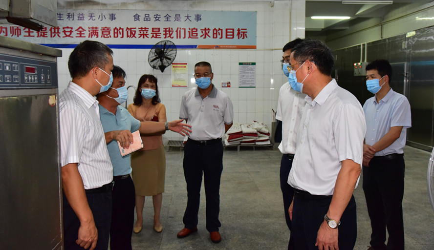 本网讯 为迎接新学期开学, 落实旧生返校、新生入学及疫情防控工作,8月27日,校长吴业春带队前往学校食堂、星湖校区开展安全专项检查。副校长唐冬冬,后勤管理处、星湖管理办公室有关负责人陪同。