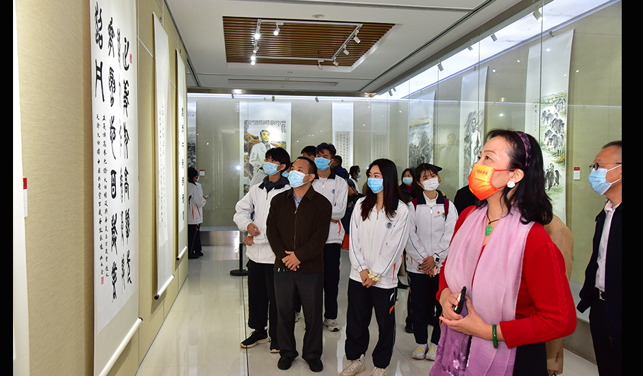 吴业春在致辞中指出,本次书画展不仅是富有艺术价值的书画教学课,更是极具思想内涵的思政理论课,能够启发我们感党恩、听党话、跟党走,不忘初心,砥砺前行。这与我们当前正在深入开展的党史学习教育构成无缝的对接,希望学校师生透过书画作品传递的信息,回顾革命故事,重温红色记忆,坚定理想信念,奋进崭新征程。