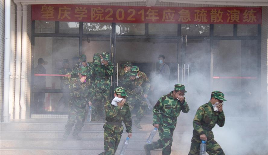 演练现场,随着警报声响起和烟雾弹释放,学生在应急疏散组人员安排下,嘴捂湿毛巾,有序从宿舍楼撤离至疏散地点。待学生集结完毕,负责人员清点人数并逐级上报汇总,确保全员撤离。