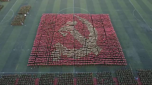 伴随了四名新生的澎湃朗诵,两千余名新生手举颜色板不断变换图案,党旗飘扬、嘉兴红船、火箭腾飞,借由他们的表演一一呈现,描绘出党和人民百年来走过的伟大征程。现场学生高声合唱《祖国不会忘记》,他们将把这14天的所学融入今后的学习和工作中,早日成长成才,成为建设祖国的栋梁。
