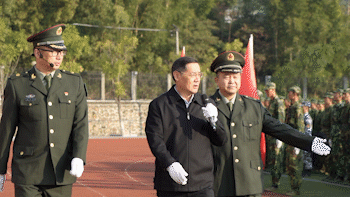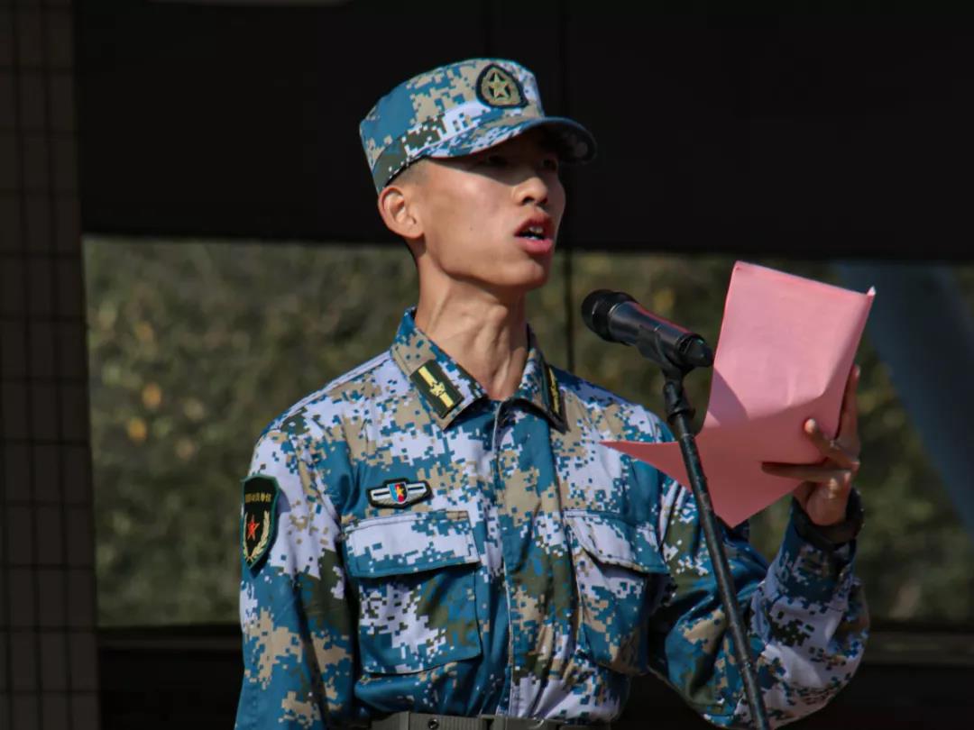 “同志们好!”“校长好!”“同志们辛苦了!”“为校争光!”校长吴业春亲切的问候。与军训学员整齐响亮的回答交织在一起,回荡在第二运动场的上空。