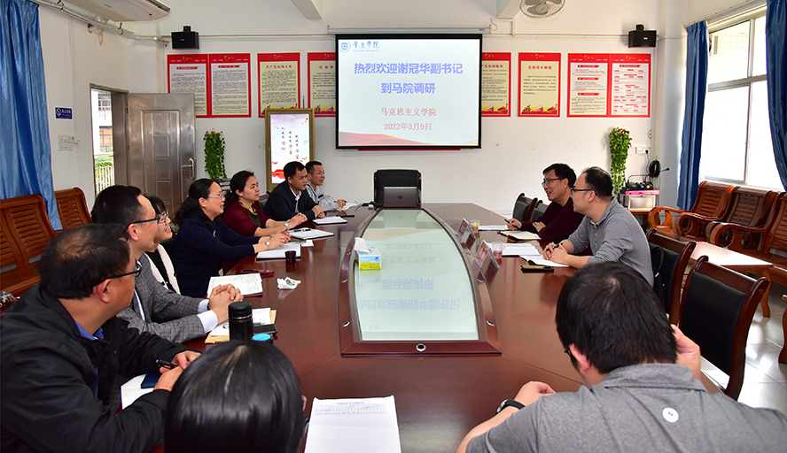 本网讯 3月9日,校党委谢冠华副书记在校党委委员、宣传部陈前部长陪同下到马克思主义学院调研,马克思主义学院领导班子和各教研室主任参加。