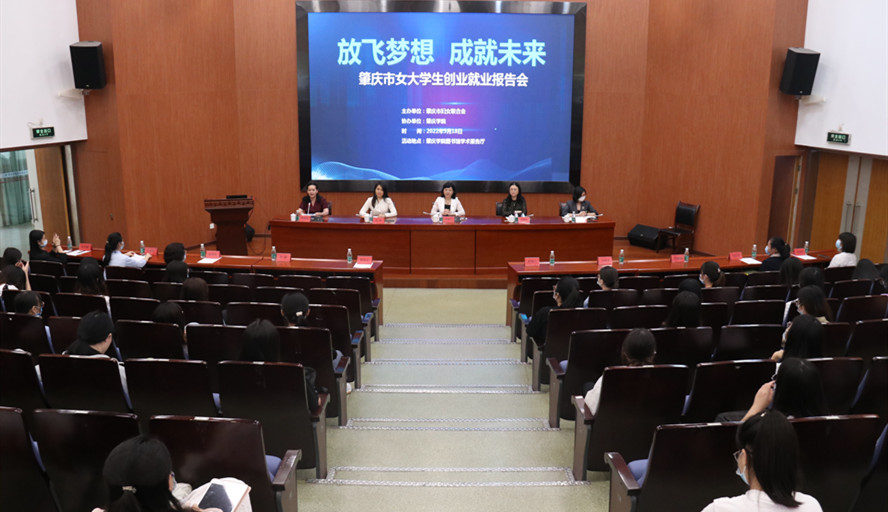 市妇联党组书记、主席张晓兰,市人社局副局长谭景全、肇庆学院就业指导处处长梁建梅、各二级学院女大学生代表出席了该次活动。