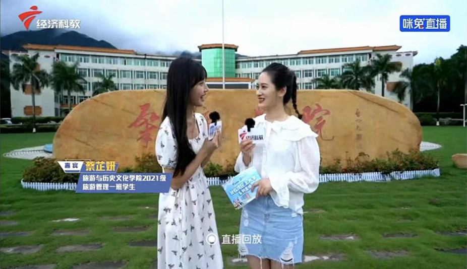 旅游与历史文化学院2021级蔡芷妍同学作为学生嘉宾参加直播节目,以良好的临场表现展示了砚园学子的风采。