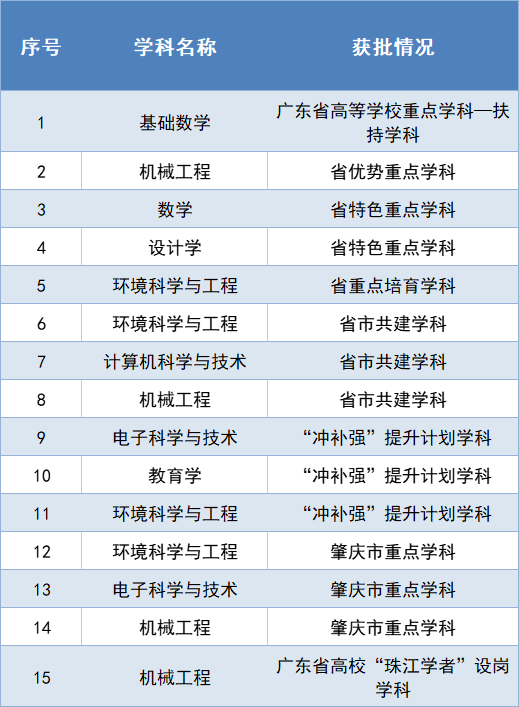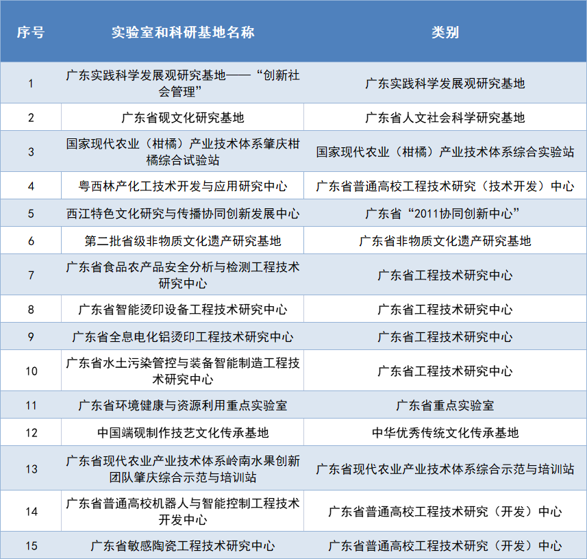 肇庆学院拥有经济学、法学、教育学、文学、历史学、理学、工学、农学、管理学、艺术学等十大学科门类,今年招生专业63个。目前,学校有11个省级各类重点建设学科,有国家级特色专业1个,省级重点特色专业13个,省级以上本科专业综合改革试点9个,省级应用型人才培养示范专业6个,省级一流本科专业建设点12个,通过IEET工程教育认证专业4个,通过教育部二级师范认证专业2个。学校建有市(厅)级以上科研平台38个,其中省级科研平台19个,为地方环保产业、信息产业、新能源汽车、智能装备制造、生物医药等产业的科技与人才支持力度不断增强。