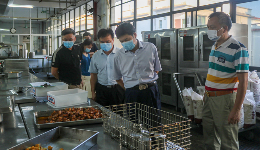 9月26日,校党委书记曾桓松带队深入学生食堂进行食品安全检查工作,分别对学校第四食堂一至三楼的学生就餐环境、原材料采购和贮存、食品加工制作、餐具清洗消毒等情况进行详细检查。他指出,后勤管理处和膳食供应部门要始终把师生生命安全和身体健康放在第一位,增强食品安全意识,规范操作流程,严格把控原材料质量,确保师生饮食安全。