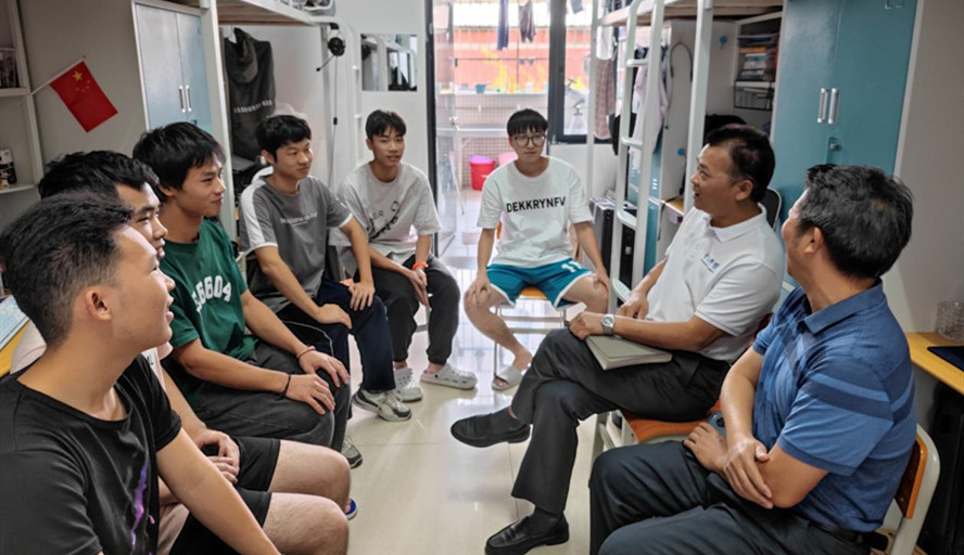 刘怡军首先来到有身体缺陷的曾廣同学的宿舍,详细了解曾廣的身体情况、在校学习生活的日常情况、学院志愿帮扶团队的建设情况等,在了解到学校和学院都非常重视曾廣的学习和生活,解决了很多问题保障曾廣能够正常学习生活后,他鼓励曾廣树立远大理想、夯实学科基础、为继续深造考研努力学习。