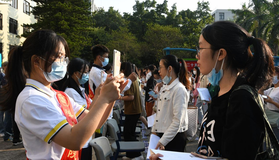 考试当天,考生自觉遵守考场规定,佩戴口罩并携带身份证、准考证等相关证件,经健康信息查验、身份核验和体温检测后,有序进入考场;巡考人员巡视各个考场,严格监控考场相关工作的落实情况;监考员、安保人员和志愿者维护考场秩序,保障考试良好环境。教务处、保卫处、后勤处、校医院等各部门分工协作、各司其职,严格落实防疫要求和考务工作,确保此次考试安全、平稳、有序进行。