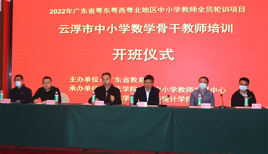 本网讯 11月5日, 由数学与统计学院承办的广东省粤东西北地区中小学教师全员轮训项目云浮市中小学数学骨干教师培训班开班。教师教育学院党总支书记张占亮、数学与统计学院院长朱智伟出席开班典礼,项目负责人程从华主持。