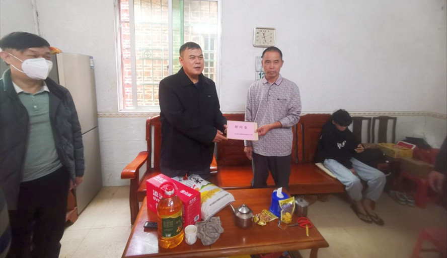 除了开展调研活动外,李新昌一行还开展了春节走访慰问活动。他来到桃村对2户监测户送上慰问金和米、油、面等慰问品,让老乡真切感受到党和政府的关怀和温暖。