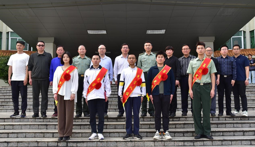 谢冠华为新兵和老兵佩戴红花。武装部代表学校表达了对新兵的祝福和期望,希望他们在部队里不忘初心、牢记使命,严于律己,刻苦训练,尽快完成由大学生向合格军人的转变,在部队中茁壮成长,建功立业,为国防事业作出积极的贡献。同时勉励老兵适应校园生活,争取做到退役不褪色,继续发扬部队优良作风,发挥退伍军人的榜样示范作用。