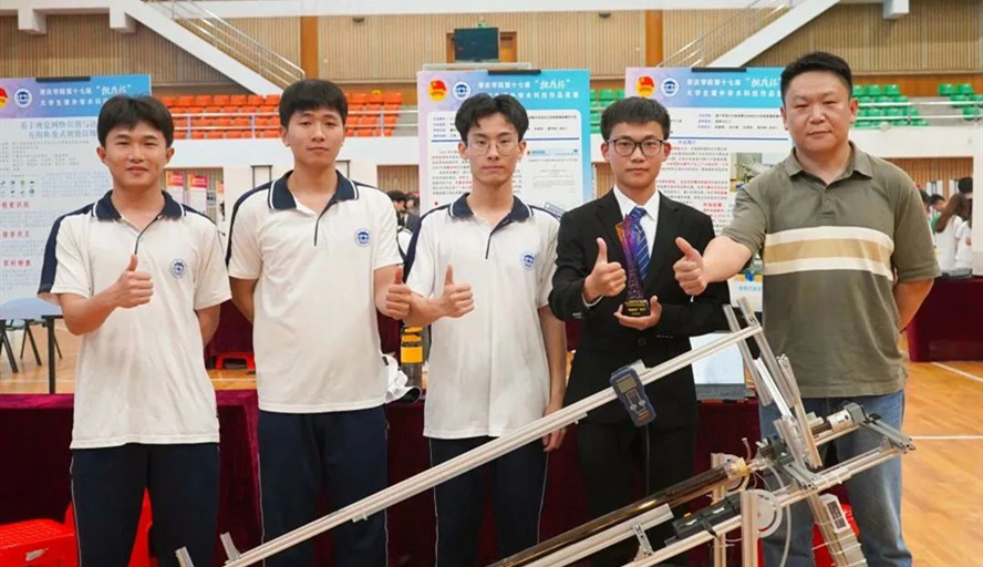 特等奖作品《基于菲涅尔定焦线聚光系统的太阳能蒸馏装置的开发》第一作者林楚绵同学表示,从作品的制作到实验测试,经历了院赛再到校决赛,这不仅仅是一件作品日臻完善的过程,更是奋斗历程的最好见证,是他们团队在本次比赛中的最大收获。另一个特等奖作品《Ipench Vlive虚拟数字人单摄动捕软件》第一作者劳泽扬同学则表示,在参赛过程中,不仅学习了专业以外的多知识和技能,也提高了自己的团队协作和沟通能力,更重要的是,这次比赛使他们深刻认识到创新的重要性。