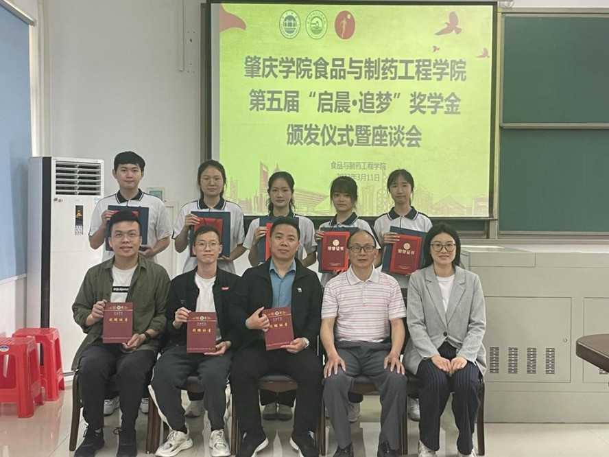 本网讯 食品与制药工程学院近日举行第五届“启晨·追梦”奖学金颁奖仪式。学院党委副书记蔡振治出席仪式,该奖学金创办者优秀校友王森才、罗炳辉、廖威林以及各班级学生代表参加。