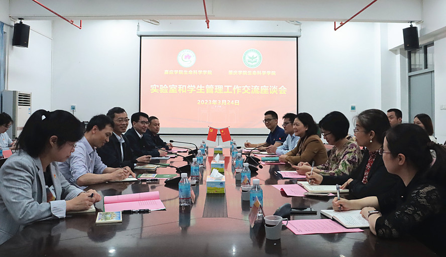 本网讯 3月24日,嘉应学院生命科学学院党委书记苏贤聚带领实验中心及学工团队一行来到我校,与生命科学学院开展交流活动。学院党委书记胡隼、副院长邵玲(主持行政全面工作)出席交流。