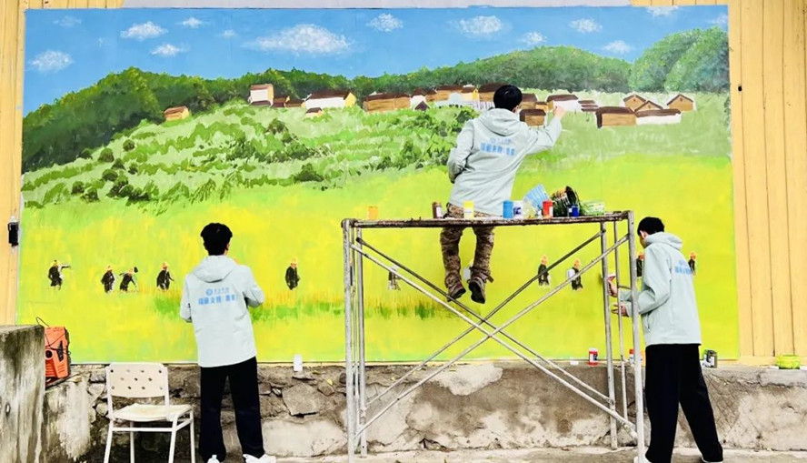当天,全体党员还来到墨脱戍边模范营开展墙绘工作,以实际行动向戍边部队表达敬意。