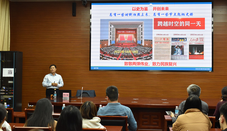 本网讯 4月8日,兰州大学核学院教授吴王锁应邀来校,为环境与化学工程学院做《总体国家安全观背景下的新时代环境放射化学问题及思考》讲座。学院党委书记李湘主持,各年级学生代表近百人参加。
