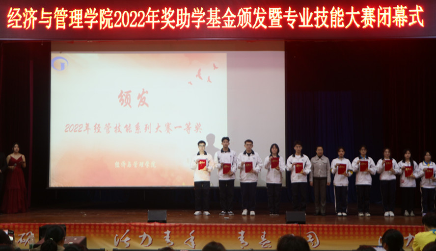 本网讯 为表彰在过去一年专业技能系列大赛中表现优异的团体和个人,经济与管理学院4月9日在学生活动中心举办专业技能系列大赛颁奖仪式。学院领导及师生代表参加。