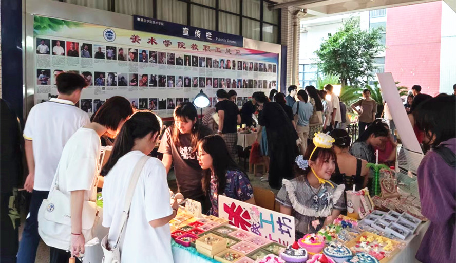 本网讯 4月19日,由创新创业学院指导,学生工作处、学生就业指导处、团委主办,美术学院承办的“砚园市集·毕业季”在美术学院一楼大厅举办。本次活动结合美术学院毕业设计展及就业招聘会,从全校招募作品现场展示和售卖,旨在激励学生充分发挥专业优势,进行原创产品开发及市场对接。
