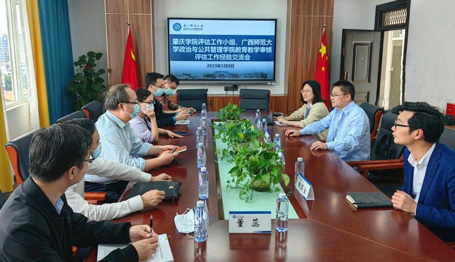 当天下午,自评自建工作小组来到广西师范大学政治与公共管理学院,院长肖富群、副院长石大建参加交流,就审核评估二级学院工作经验做了介绍,表示在迎评阶段二级学院必须严格对照指标体系,将各项任务落实到每位教师,对标做好所有资料的归档工作。
