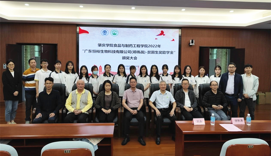 本网讯 5月12日,食品与制药工程学院举行2022年“广东恒裕生物科技有限公司贫困生奖助学金”颁奖大会,表彰和鼓励积极进取、勤奋刻苦的贫困学生,树立优良学风并激励更多学子努力拼搏、勤学奋进。