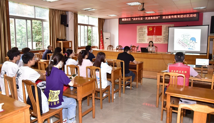 本网讯 5月23日,校普法办在我校结对帮扶的端州区睦岗街道蕉园社区组织开展“美好生活·民法典相伴”普法教育宣传活动,加强《中华人民共和国民法典》学习宣传教育,推动基层普法。