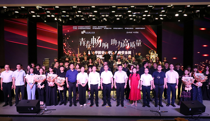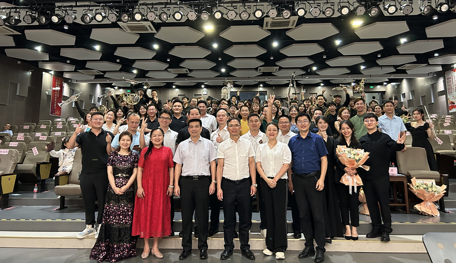 当天晚上,在东莞市常平镇青少年宫星剧场举行青春畅响,助力高质量——肇庆学院音乐学院交响管乐团“湾区行·东莞站”公益音乐会,音乐学院领导和师生,常平镇宣传教育文体旅游办、教育管理中心、文化服务中心、妇联、团委、青少年宫相关负责人以及多位肇庆学院校友等400余名观众出席了音乐会。