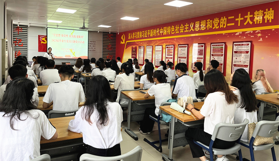 6月18日,旅游学院在初心堂举行2023届毕业生主题党日。杨雪梅主讲专题党课《传承弘扬红色精神,做担当民族复兴大任的时代新人》。她希望同学们志存高远、忠于祖国,敢于担当、勇于奋斗,勤奋学习、锤炼身心,让青春在全面建设社会主义现代化国家的火热实践中绽放绚丽之花。毕业生党员纷纷表示,要时刻牢记党员身份,修身慎行,求真务实,做新时代担当作为的青年党员,为实现中华民族伟大复兴的中国梦贡献青春力量。