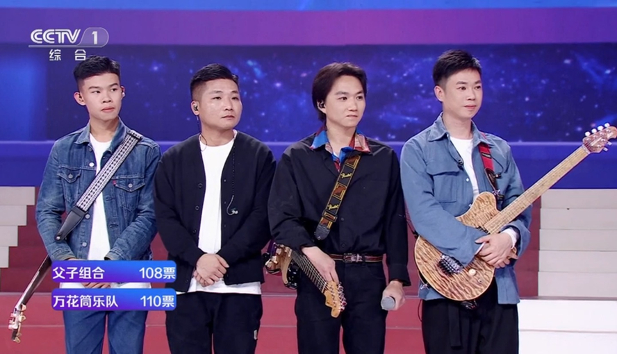 本网讯 6月17日,音乐学院学生陈瑞锋作为万花筒乐队组合的贝斯手,参加央视《星光大道》节目。