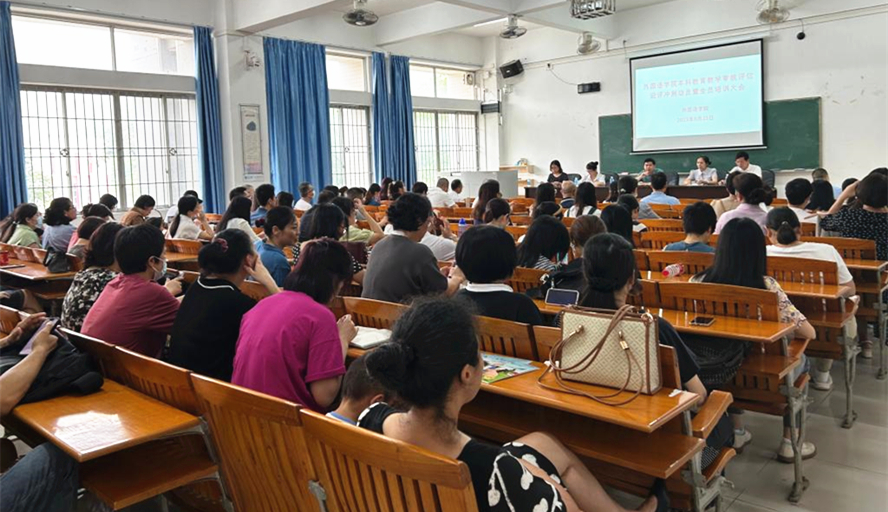 本网讯 为做好迎评工作,8月25日,外国语学院召开本科教育教学审核评估迎评冲刺动员暨全员培训会,会议由学院党委书记吕伟荣主持,学院全体教师参加。