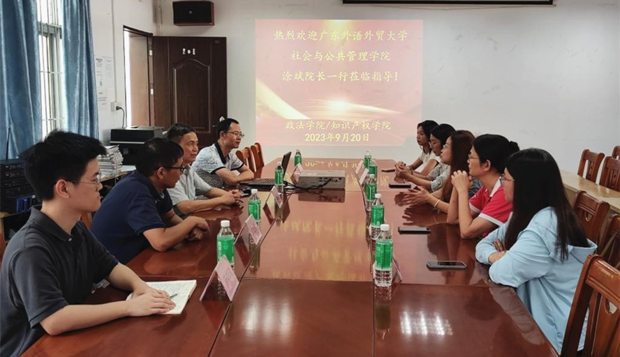 本网讯 9月20日,广东外语外贸大学社会与公共管理学院院长涂斌一行到政法学院开展调研交流,并进行硕士研究生招生宣讲。