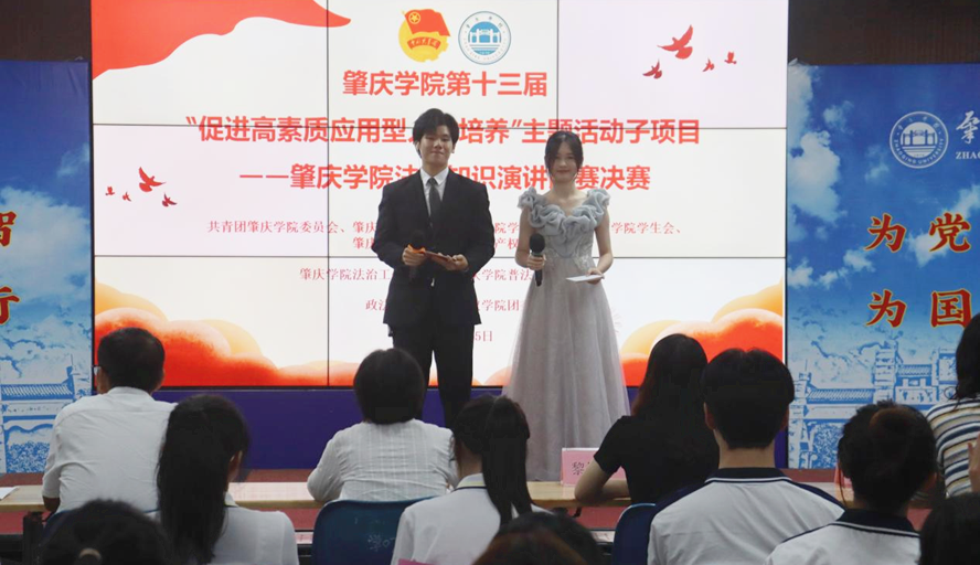 本网讯 10月25日,肇庆学院第十三届“促进高素质应用型人才培养”主题活动子项目——法律知识演讲比赛决赛在学生发展中心落下帷幕。此次大赛由学校法治工作办公室、普法工作办公室联合指导,由政法学院团委承办,经过初赛、复赛选拔,共有12名选手晋级参加本次决赛。