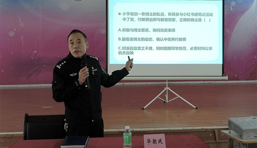 宣讲通过三道防诈反诈选择题引入,讲述了电信网络诈骗中各种隐藏的套路以及存在的危害,告诫同学们要警惕熟人诈骗、刷单诈骗、网络交友诈骗和冒充公检法诈骗等诈骗行为,保持警惕,守护好人身和财产安全。