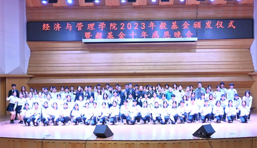 本网讯 12月17日,经济与管理学院举办2023年毅基金颁发仪式暨毅基金十年感恩晚会。副校长唐冬冬、毅基金代表王中生、教育发展基金会理事长沈钦萍、经管学院党政班子、毅基金应届和往届受助者300余人参加。
