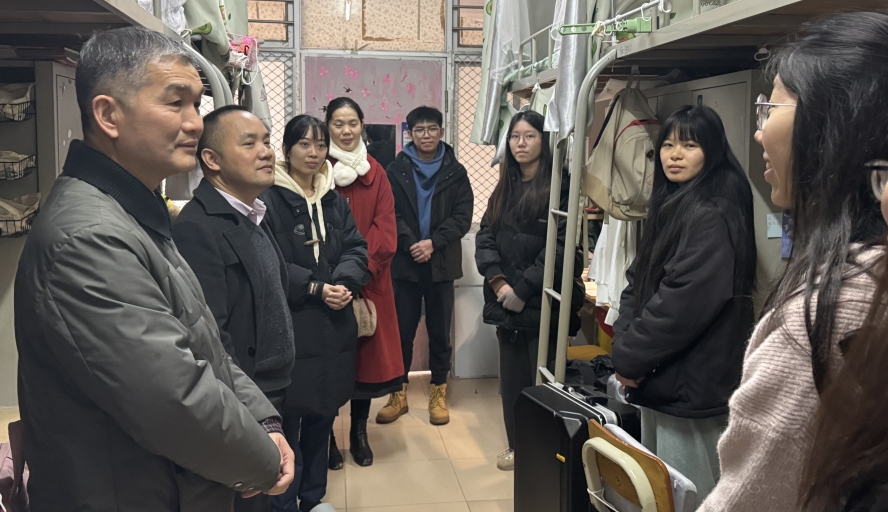 在走访探望过程中,两位院领导与5名毕业班同学进行了交流,了解学生寒假留宿初衷、个人职业规划、就业进展和毕业论文撰写进度等情况。针对同学们在学业和求职中遇到的困惑,他们一一给予解答,希望大家做好规划,稳扎稳打,确保学业与职业同步发展提升。他们叮嘱同学们要注意防寒保暖,并在照顾好自己的同时,定期与家人保持联系,向家人报平安。最后,他们向留宿同学送上了新年的祝福。