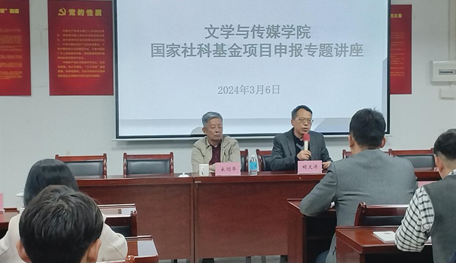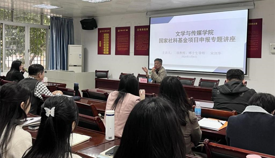 本网讯 3月6日,文学与传媒学院特邀暨南大学文学院二级教授、博士生导师宋剑华到院开展国家社科基金项目申报专题讲座。
