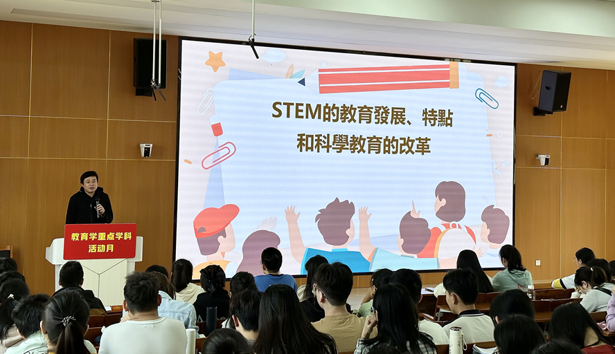 彭俊博士围绕“STEM项目式学习的发展、特点和科学教育的改革”主题进行分享指导。他阐述了创新在科技革命与人才培养方面的重要性,解释了STEM教育的概念以及对应的四种核心素养,详细分析了如何在新课程标准下开展跨学科主题学习和项目式学习,并分享了STEM教育在澳门的计划与经验。