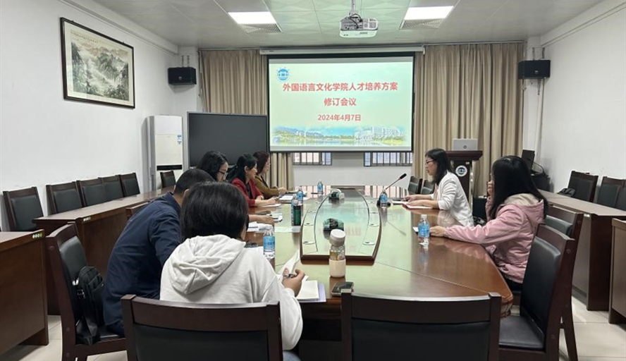 本网讯 4月7日,外国语言文化学院举行贯彻落实OBE理念的人才培养方案修订研讨会。研讨会由学院主持行政全面工作副院长于增辉主持,副院长郭美华、各专业负责人及教研室主任、教务员等参加会议。